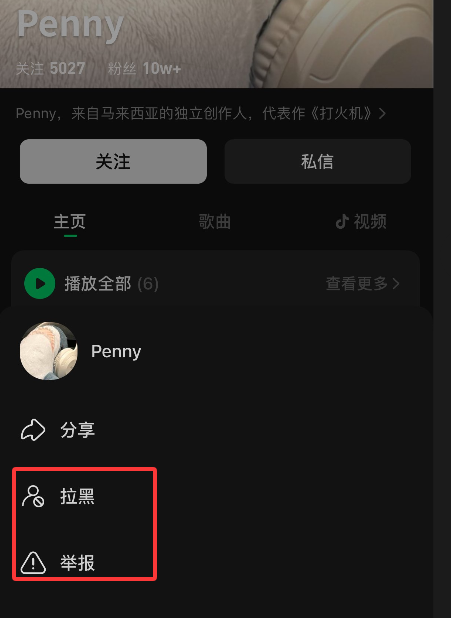 更多隐私,参考百度经验汽水音乐拉黑教程,有图解。